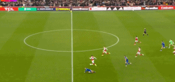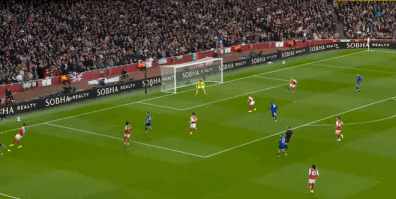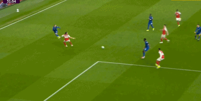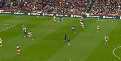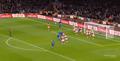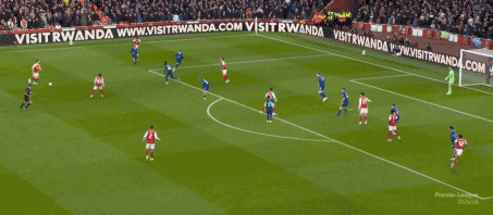 第13分钟,赖斯左路45°传中,苏维门迪头球后蹭,萨卡近距离冲顶,皮克福德回敬神扑,埃弗顿逃过一劫。